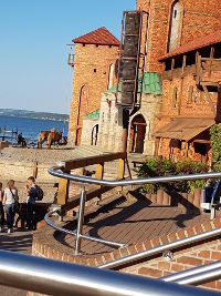 Wir hatten recht schnell einige Geschäfte entdeckt, in denen ich mich problemlos bewegen konnte, also war auch das Einkaufen eine Freude. Am dritten Urlaubstag waren wir bei den Störtebeker – Festspielen in Ralswiek. Mein lieber Mann und ich waren mit Fahrrad und Rollimotor hingefahren und haben voller Freude die prima Betreuung genossen. Als Rollifahrer hatte ich die Wahl, entweder auf der entsprechenden Loge zu stehen oder einen kleinen, mobilen Balkon an die Schräge neben den Sitzplätzen gestellt zu bekommen. Wir genossen die Vorstellung von der Loge aus, eine wunderbare Sache!